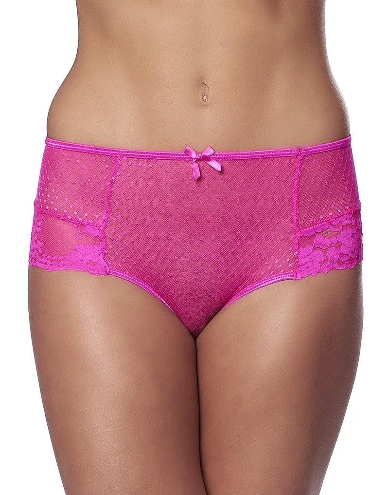 Elegante slip van een luxe kanten stof. Voorzien van open achterkant en afgewerkt met een mooi rijglint.