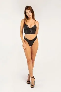Amorable By Rimba – Zwart Corsetlijfje Transparant Met Kousen En String