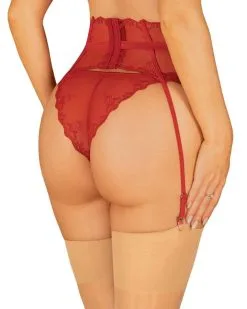 Amorable By Rimba Smalle Jarretelgordel Met Lief Zwart Strikje Inclusief Kousen – Rood