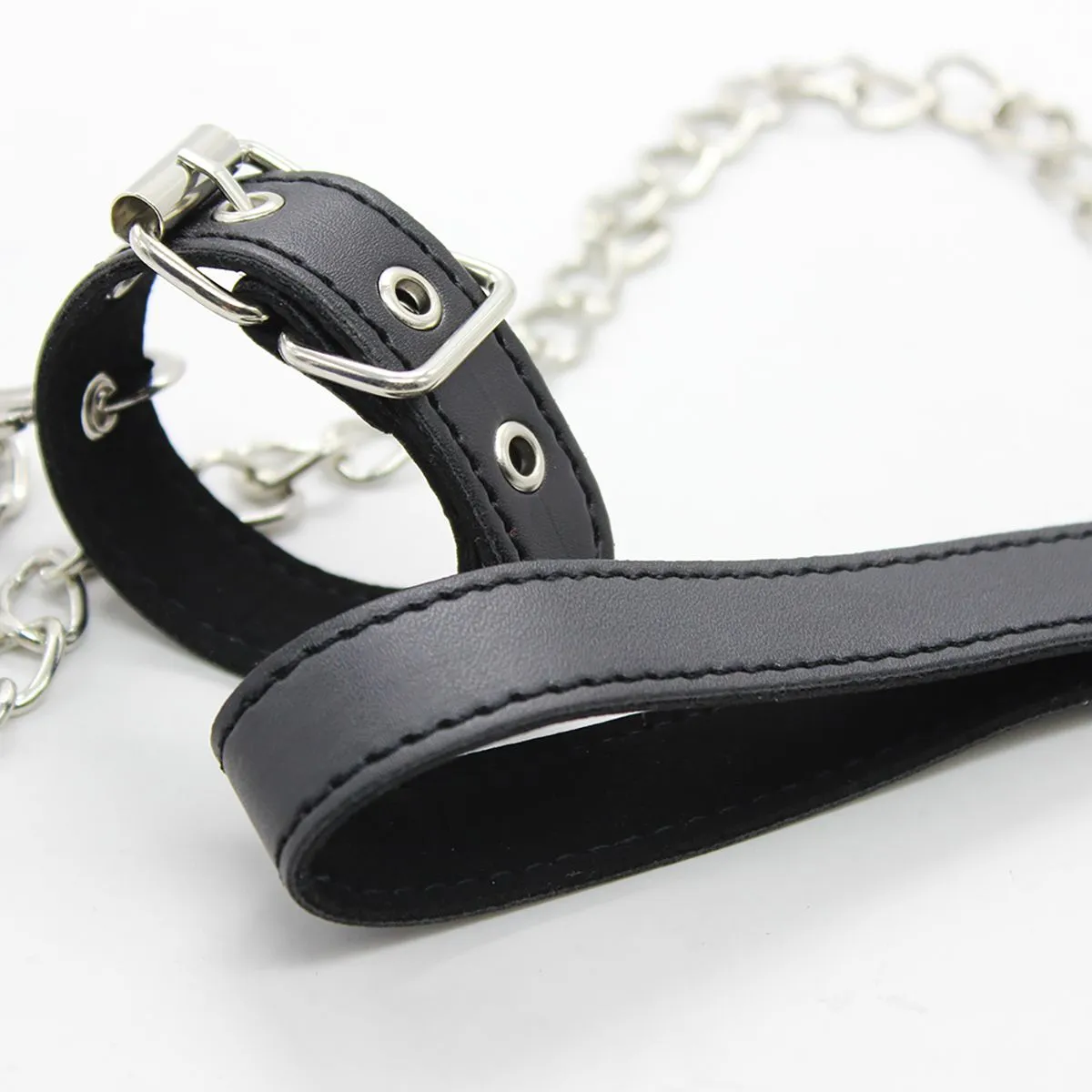 Maak deze PU-Leather Buckle ring vast samen met de Steel chain leash.