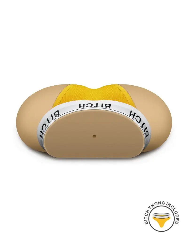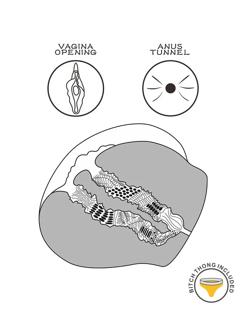 Deze masturbator is gemaakt van realistisch, huidvriendelijk materiaal dat het vrouwelijk lichaam nabootst en zorgt voor een uiterst realistische ervaring. De ontworpen vaginale tunnel heeft getextureerde binnenkant dat duidelijk voelbaar is bij het inbrengen van de penis. Inbegrepen is een gele “bitch”-string. De string kan ook van de masturbator worden verwijderd.