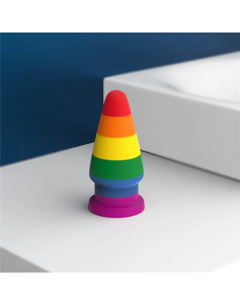 Deze plug van 15 cm is versierd met de regenboogkleuren, typerende kleuren voor de LGBT+ gemeenschap. De plug is perfect voor zowel vaginaal als anaal gebruik. Door de sterke zuignap kan de dildo op elk glad, hard oppervlak worden bevestigd voor handsfree gebruik.