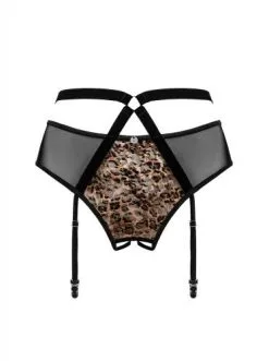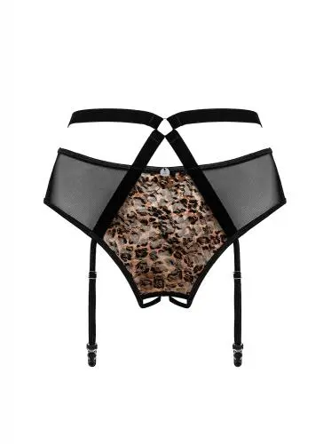 Deze sexy jarretelgordel met open kruisje van Obsessive is speciaal ontworpen voor dames met mooie curves en geeft een heerlijke twist aan een spannende avond! Draag de gordel onder een jurkje met een paar mooie kousen en verras jouw partner met de ultieme verleiding. De gordel heeft een speelse belijning en een uitdagende luipaardprint. De billen zijn grotendeels onbedekt en de jarretelbandjes zijn verstelbaar. Het materiaal is elastisch voor een mooie pasvorm.