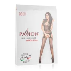 Passion – Zwarte Netstof Bodystocking Met Open Kruis