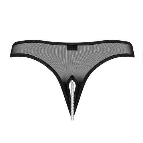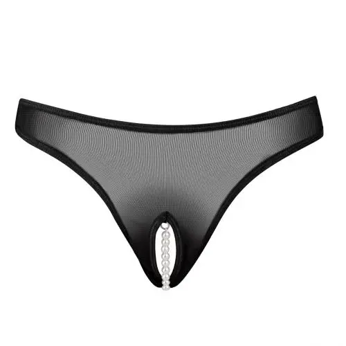 Deze sexy transparante string heeft een spannend open kruisje met een mooi parelkettinkje. Het materiaal is elastisch voor een mooie pasvorm.